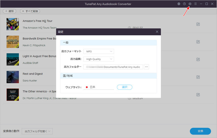 Audible のオーディオブックを MP3、M4A、M4B へ変換。